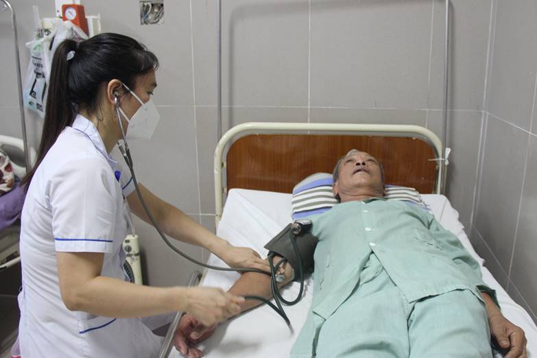 Đo kiểm tra huyết áp cho bệnh nhân đang điều trị tại Bệnh viện Đa khoa tỉnh Lạng Sơn