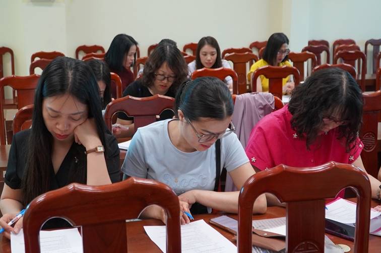 Học viên làm bài kiểm tra kiến thức đầu vào tại lớp tập huấn