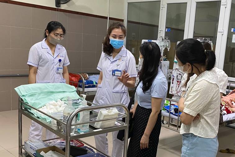 Bên cạnh phần lý thuyết, học viên được tham gia thực hành, quan sát quy trình thu gom rác thải, vận chuyển và lưu giữ chất thải y tế; công tác xử lý chất thải y tế tại Bệnh viện Đa khoa tỉnh và tìm hiểu hệ thống văn bản, số sách, biểu mẫu liên quan đến quản lý chất thải y tế.